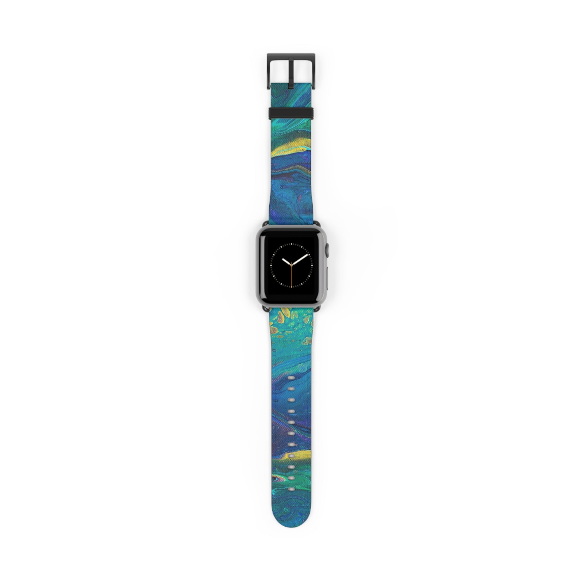 Elevate your Apple Watch with this stunning Watch Band featuring a mesmerizing fluid art painting called 'Peacock Sworks'. The rich teals, blues, and golds create an otherworldly river-like design, evoking a sense of wonder and timeless beauty. Perfect for those who appreciate unique and artistic accessories.