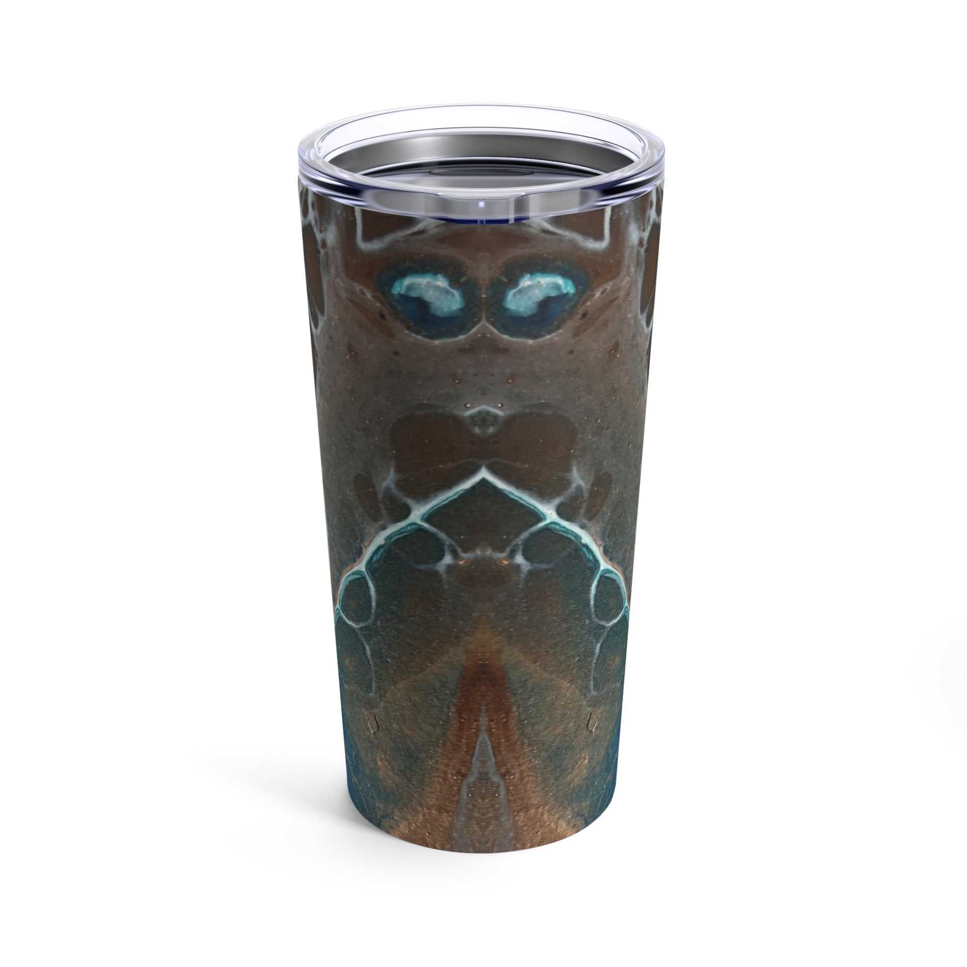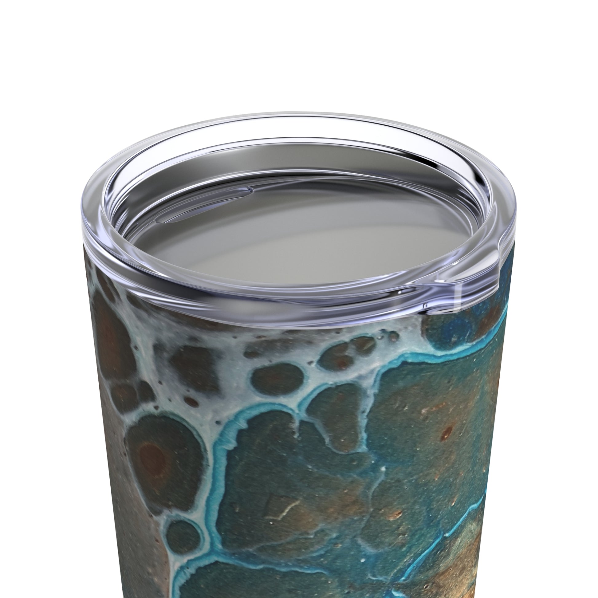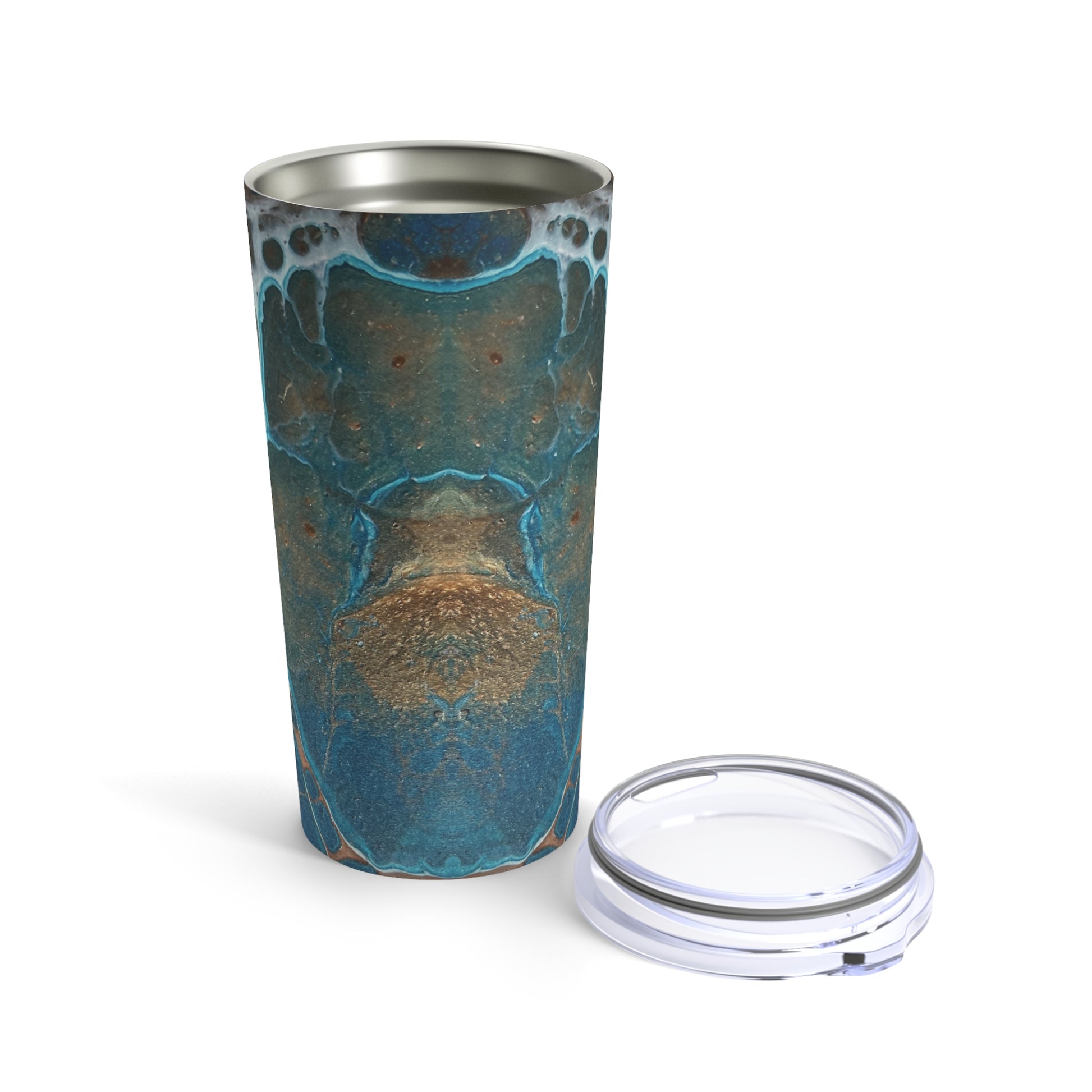 Inspired by the natural beauty of mineral formations, this tumbler is an excellent choice for daily use to keep 20oz of your favorite beverages hot or cold thanks to the double-wall insulation. The striking abstract fluid art design features is reminiscent of verdigris patina with rich swirling patterns in shades of teal and copper set against a deep, moody background, evoking the elegance of the earth's geological wonders.